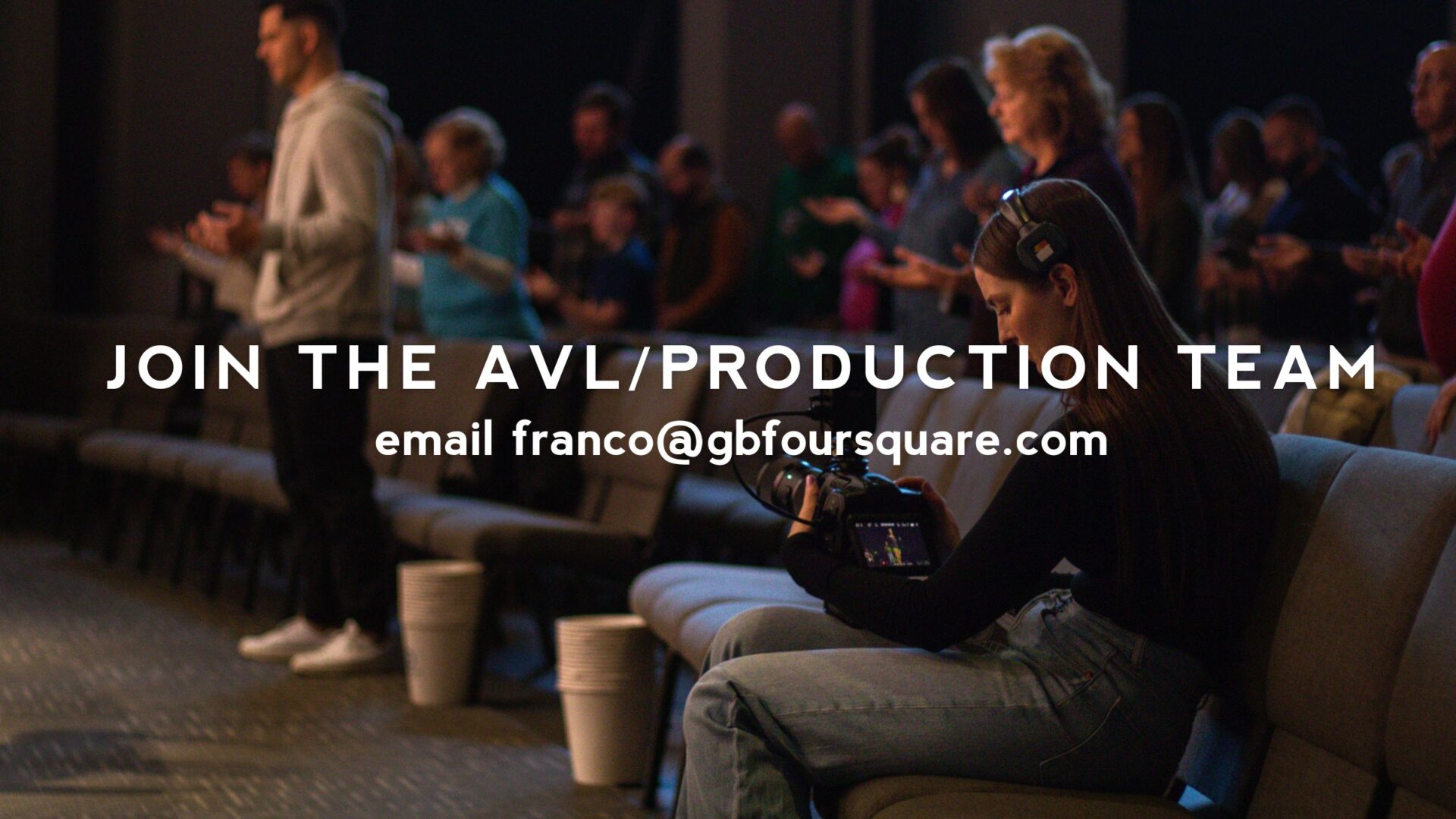 If you are interested in joining our AVL/Production Teams, we would love to serve with you! We will train you in all you need to know. Reach out to Franco Rivera by emailing franco@gbfoursquare.com.